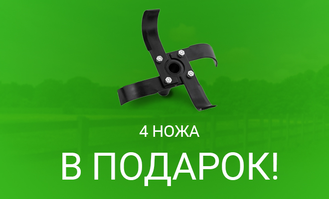 4 ножа в подарок! Акция действует при покупке любой почвофрезы.